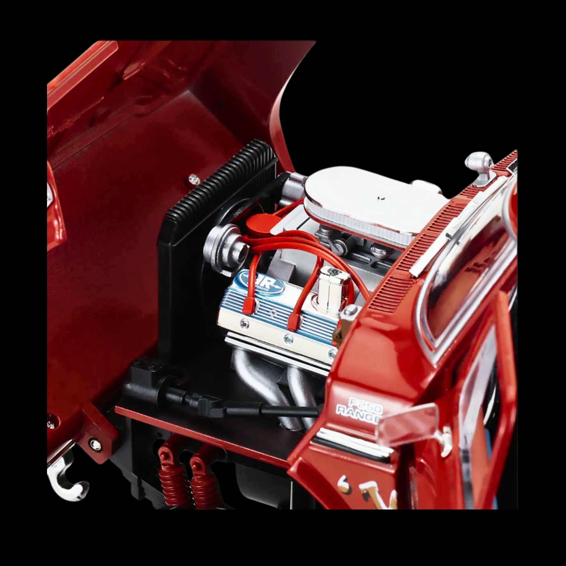 For display and photography, the working features really help: it has an opening hood, opening doors, and an opening tailgate, letting you show off the cabin and engine bay details from multiple angles. Overall size is substantial for a 1:18 truck—approximately 12.5 inches long x 5.75 inches wide x 6.25 inches high—making it a standout piece for any Ford truck, monster truck, or diecast collection.