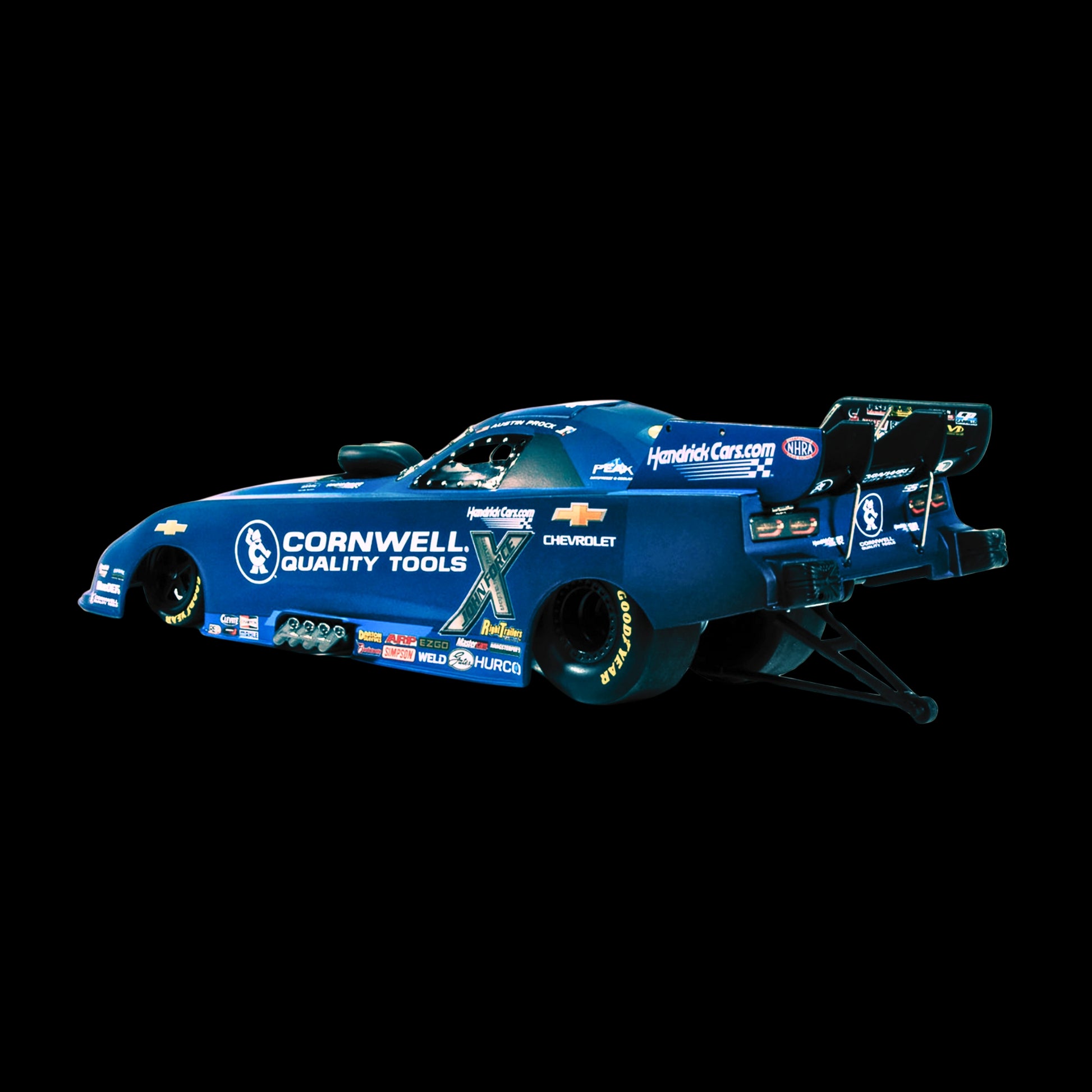 Bring the thunder of NHRA to your shelf with the 2025 Chevrolet Camaro SS NHRA Funny Car driven by Austin Prock, wearing the Cornwell Quality Tools livery for John Force Racing. This Auto World 1/24 scale release is a limited edition diecast built for collectors who want bold graphics, real presence, and display features that show off the engineering behind a Funny Car.
