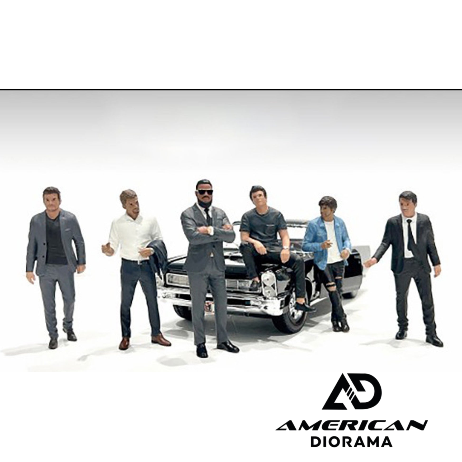 Elevate your 1:24 scale diorama with the “Gentlemen’s Club” 6-piece figure set by American Diorama. This unique collection features six highly detailed, hand-painted figures designed to bring a touch of nightlife and sophistication to your diecast car displays.