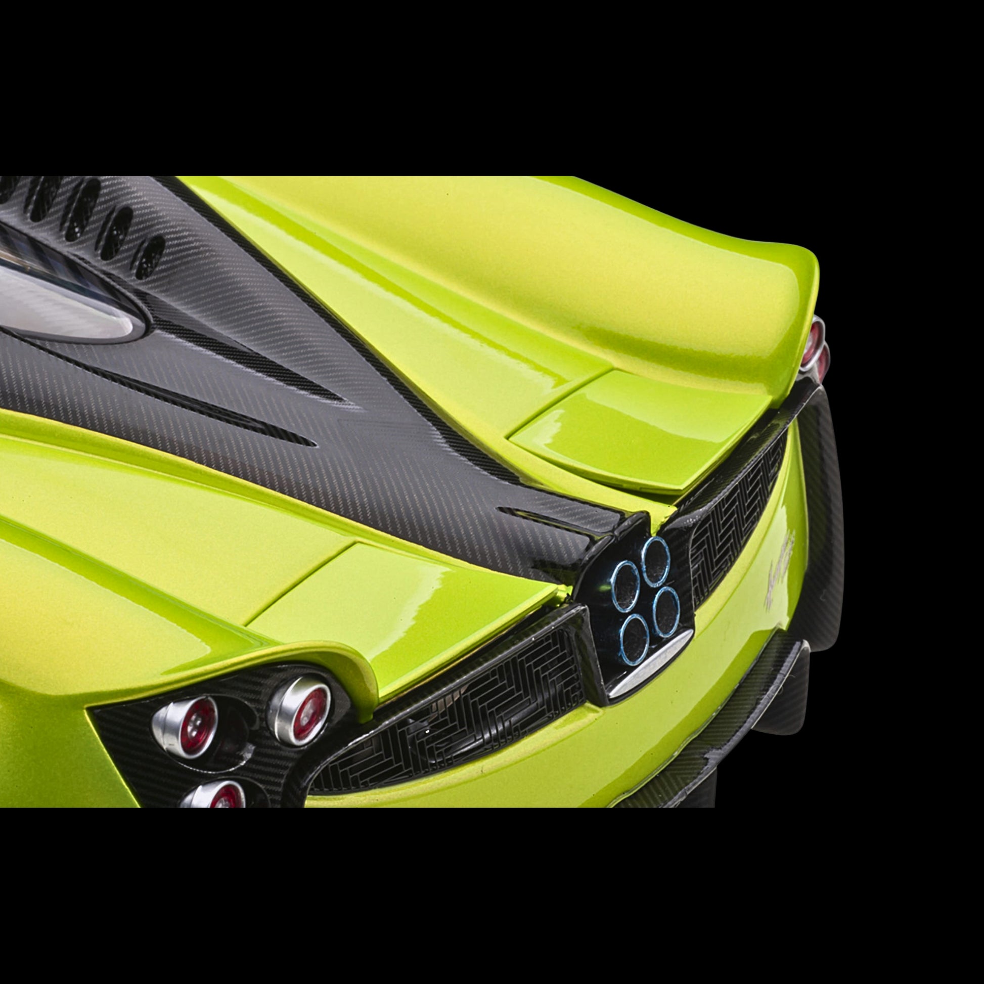 Officially Licensed Pagani Model: Faithful replica of the Huayra Roadster, finished in eye-catching green metallic with carbon details.